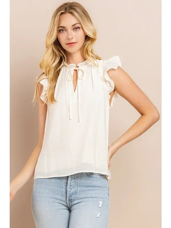 Be the talk of the town with this playful Ruffle Sleeve Top! This top features a tassel tie V-neck and is fully lined for all-day comfort. With its trendy ruffle sleeves, you'll stand out in style.